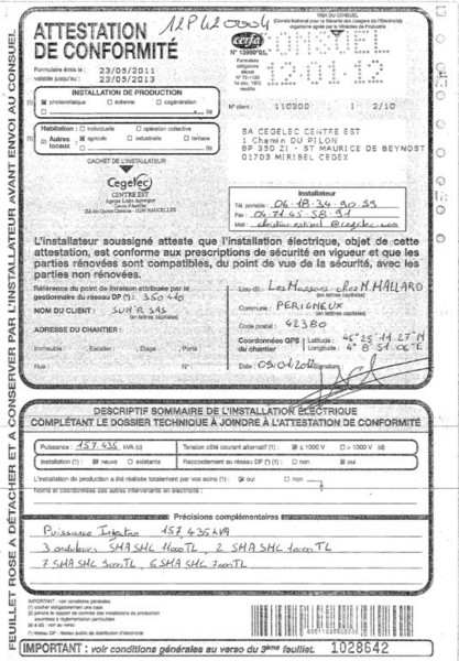 C'est une centrale d'une puissance en injection de 158 KW éligible au tarif de rachat de 0,60 €/KWh.